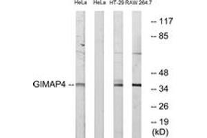 GIMAP4 Antibody detects endogenous levels of total GIMAP4 protein.