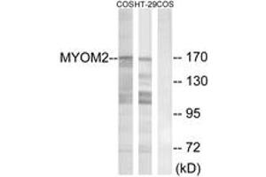MYOM2 Antibody detects endogenous levels of total MYOM2 protein.