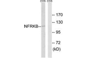 - The antiserum was produced against synthesized peptide derived from human NFRKB.