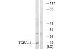 TCEAL1 Antibody detects endogenous levels of total TCEAL1 protein.