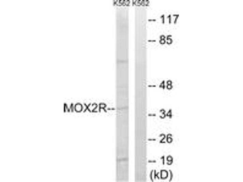 - The antiserum was produced against synthesized peptide derived from human MOX2R.