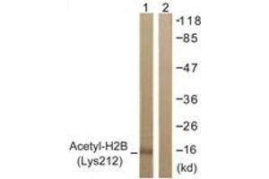 Histone H2B (Acetyl-Lys12) Antibody detects endogenous levels of total Histone H2B protein only when acetylated at Lys12.