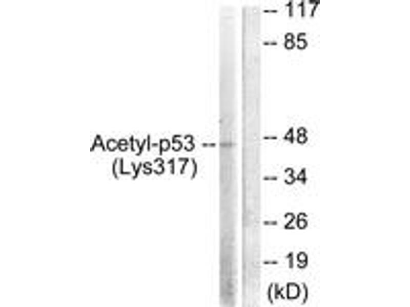 p53 (Acetyl-Lys317) Antibody detects endogenous levels of total p53 protein only when acetylated at Lys317.