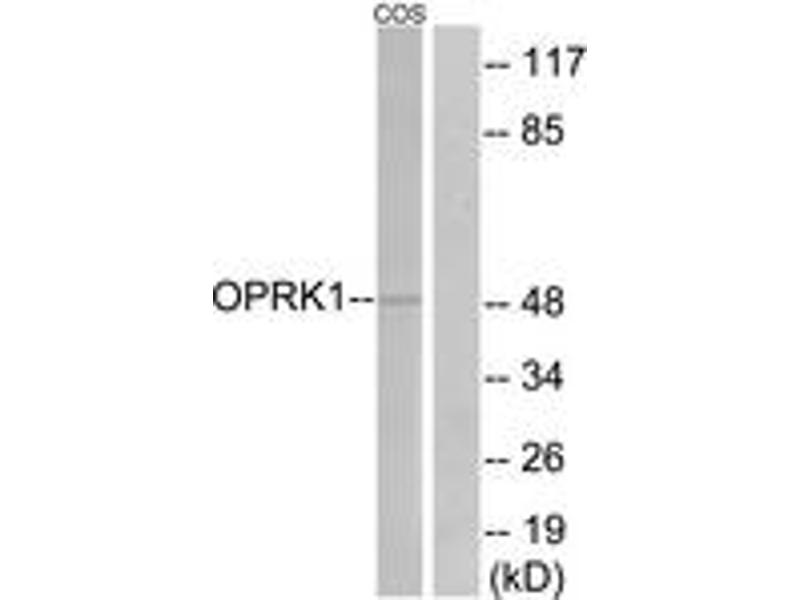 - The antiserum was produced against synthesized peptide derived from human OPRK1.