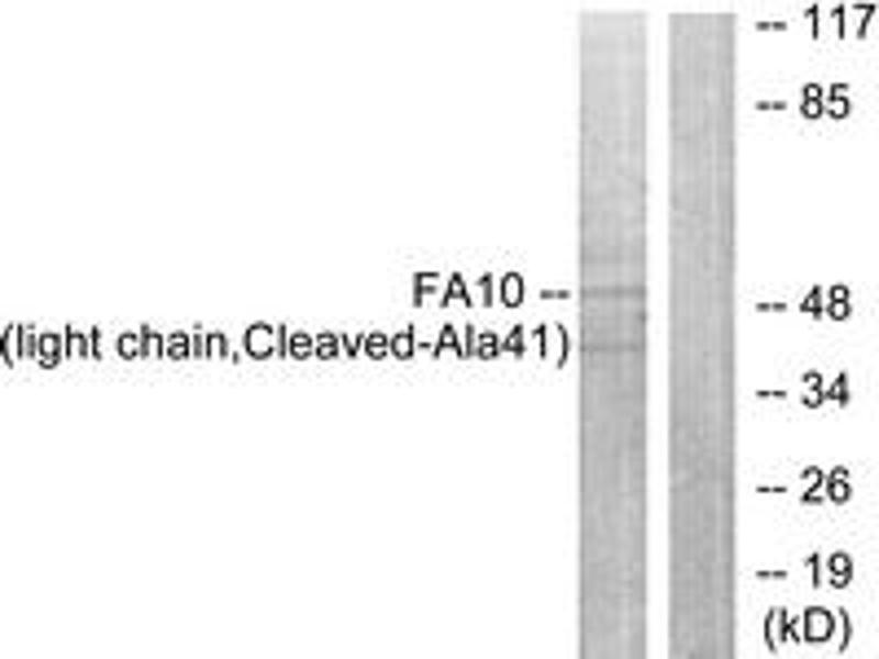 FA10 (light chain,Cleaved-Ala41) Antibody detects endogenous levels of fragment of activated FA10 resulting from cleavage adjacent to Ala41.
