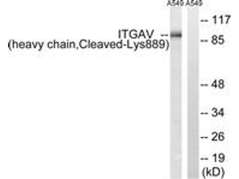 ITGAV (heavy chain,Cleaved-Lys889) Antibody detects endogenous levels of fragment of activated ITGAV resulting from cleavage adjacent to Lys889.