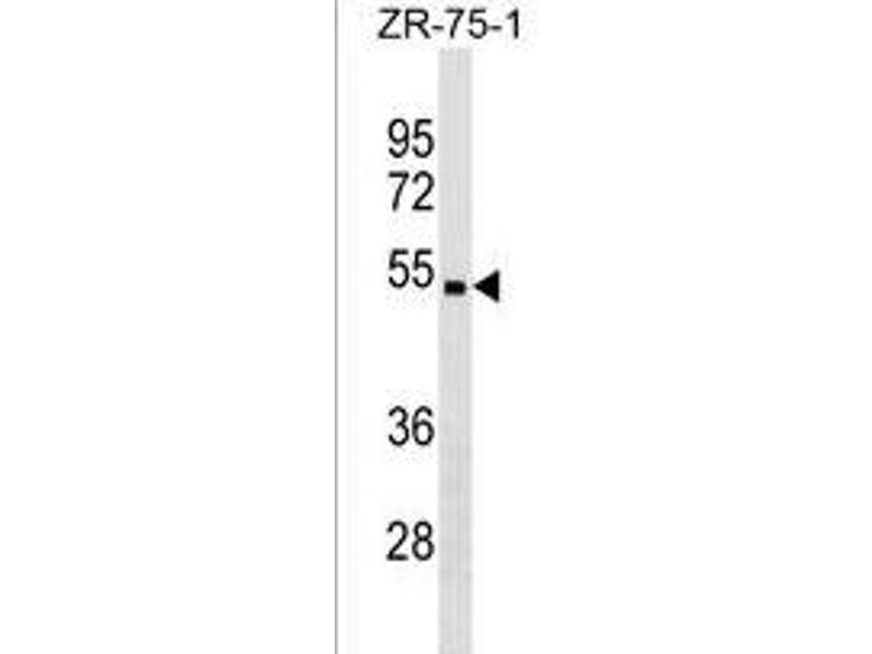 This CHST5 antibody is generated from rabbits immunized with a KLH conjugated synthetic peptide between 275-302 amino acids from the C-terminal region of human CHST5.