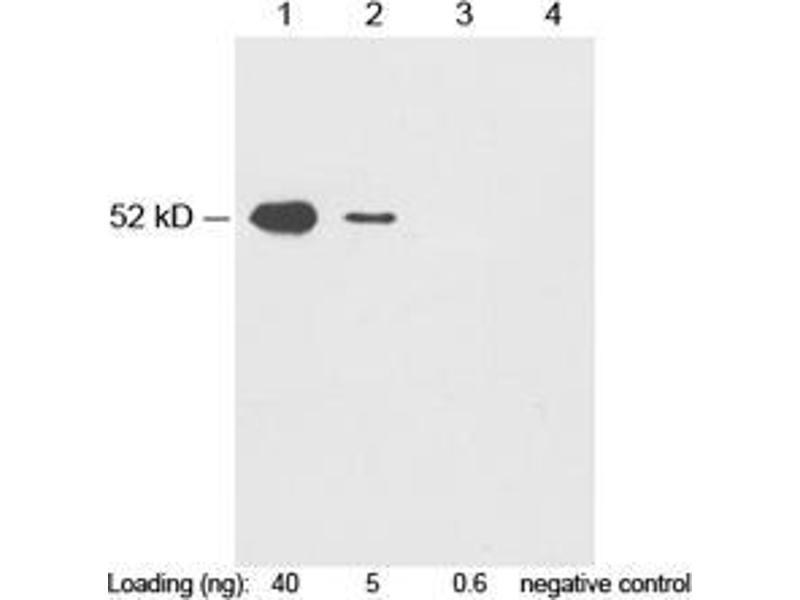 ELISA: 0.05-0.2 µg/mL Western blot: 0.1-1.0 µg/mLWestern blot using ONE-HOUR WesternTM Kit: For quick results, ONE-HOUR WesternTM Kit is recommendet. 10 µg of this antibody is mixed with 10 mL of WB solution for 8 cm x 8 cm membrane.Immunofluorescence: 5-20 µg/mLImmunoprecipitation (IP): 2-5 µg/mL Other applications: user-optimized