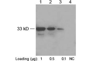 ELISA: 0.05-0.2 µg/mL Western blot: 0.1-1.0 µg/mLWestern blot using ONE-HOUR WesternTM Kit: For quick results, ONE-HOUR WesternTM Kit is recommendet. 10 µg of this antibody is mixed with 10 mL of WB solution for 8 cm x 8 cm membrane.Other applications: user-optimized