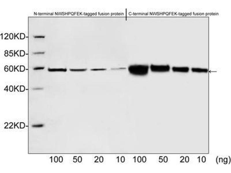 Well-characterized antibodies for epitope tags consisting of short sequences have been widely used in the study of protein expression in various systems. The NWSHPQFEK, a nine-amino acid peptide that is capable of binding to the biotin pocket of streptavidin was engineered. Rabbit Anti-NWSHPQFEK Polyclonal Antibody is developed in rabbit using a synthetic NWSHPQFEK peptide conjugated to KLH.