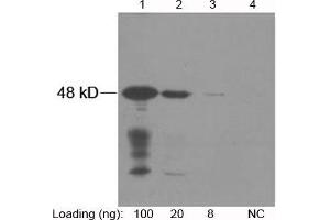 Working concentrations for specific applications should be determined by the investigator. The appropriate concentrations may be affected by secondary antibody affinity, antigen concentration, the sensitivity of the method of detection, temperature, the length of the incubations, and other factors. The suitability of this antibody for applications other than those listed below has not been determined. The following concentration ranges are recommended starting points for this product.