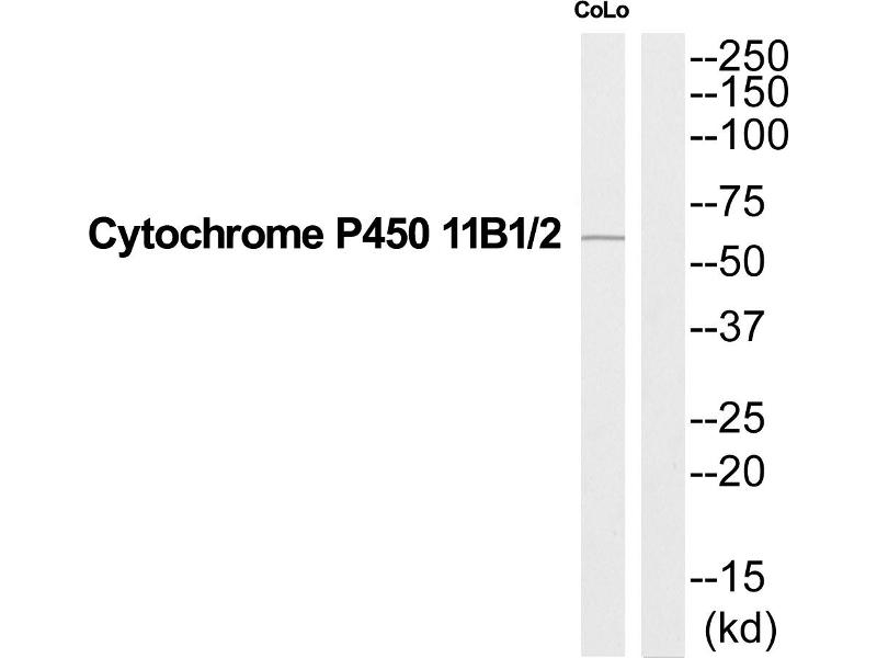 Cytochrome P450 11B1/2 antibody detects endogenous levels of total Cytochrome P450 11B1/2 protein.