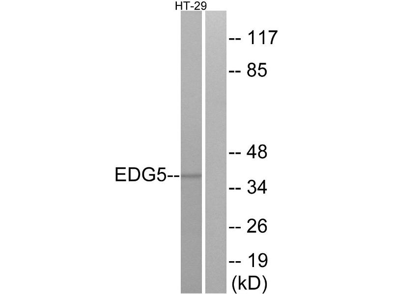 The antiserum was produced against synthesized peptide derived from internal of human EDG5.