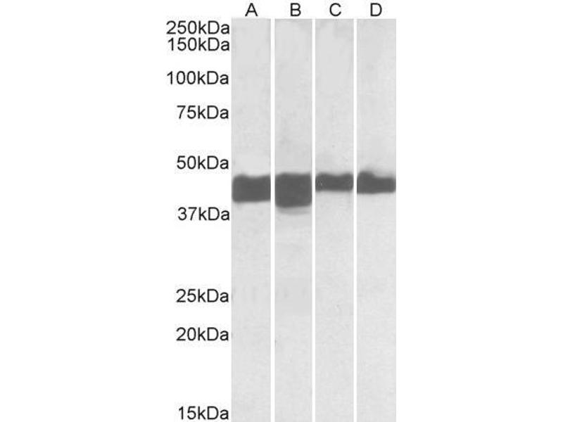 Western Blot: Approx 45 kDa band observed in Human and Mouse Skeletal Muscle and Heart lysates (calculated MW of 43.1 kDa according to NP_001815.2). Recommended concentration: 0.01-0.03 μg/mL. Primary incubation was 1 hour.