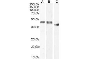 Western Blot: Approx 45 kDa band observed in Human and Pig Heart lysates, and approx 40 kDa in Rat Heart lysates (calculated MW of 43.1 kDa according to Human NP_001815.2 and 43 kDa according to Rat NP_036662.1 and Pig NP_001123421.1). Recommended concentra
