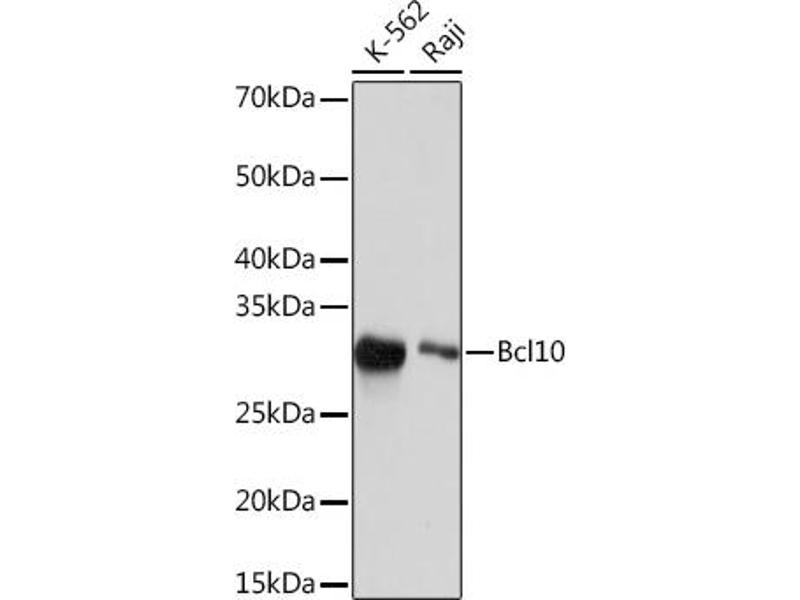 This gene was identified by its translocation in a case of mucosa-associated lymphoid tissue (MALT) lymphoma. The protein encoded by this gene contains a caspase recruitment domain (CARD), and has been shown to induce apoptosis and to activate NF-kappaB. This protein is reported to interact with other CARD domain containing proteins including CARD9, 10, 11 and 14, which are thought to function as upstream regulators in NF-kappaB signaling. This protein is found to form a complex with MALT1, a protein encoded by another gene known to be translocated in MALT lymphoma. MALT1 and this protein are thought to synergize in the activation of NF-kappaB, and the deregulation of either of them may contribute to the same pathogenetic process that leads to the malignancy. Alternative splicing results in multiple transcript variants. [provided by RefSeq, Mar 2016],CARMEN, CIPER, CLAP, IMD37, c-E10, mE10,Apoptosis,Apoptosis_Bcl 2 family,Apoptosis_Caspases,B Cell Receptor Signaling Pathway,Cancer,Cell Biology & Developmental Biology,Endocrine & Metabolism,Immunology & Inflammation,Invasion and Metastasis,Signal Transduction,T Cell Receptor Signaling Pathway,BCL10