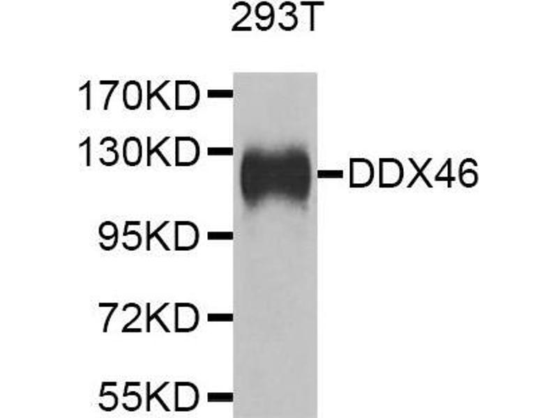 - This gene encodes a member of the DEAD box protein family. DEAD box proteins, characterized by the conserved motif Asp-Glu-Ala-Asp (DEAD), are putative RNA helicases. They are implicated in a number of cellular processes involving alteration of RNA secondary structure, such as translation initiation, nuclear and mitochondrial splicing, and ribosome and spliceosome assembly. Based on their distribution patterns, some members of this family are believed to be involved in embryogenesis, spermatogenesis, and cellular growth and division. The protein encoded by this gene is a component of the 17S U2 snRNP complex, it plays an important role in pre-mRNA splicing. Multiple alternatively spliced transcript variants have been found for this gene.,PRPF5,Prp5,DDX46,Epigenetics & Nuclear Signaling,DDX46