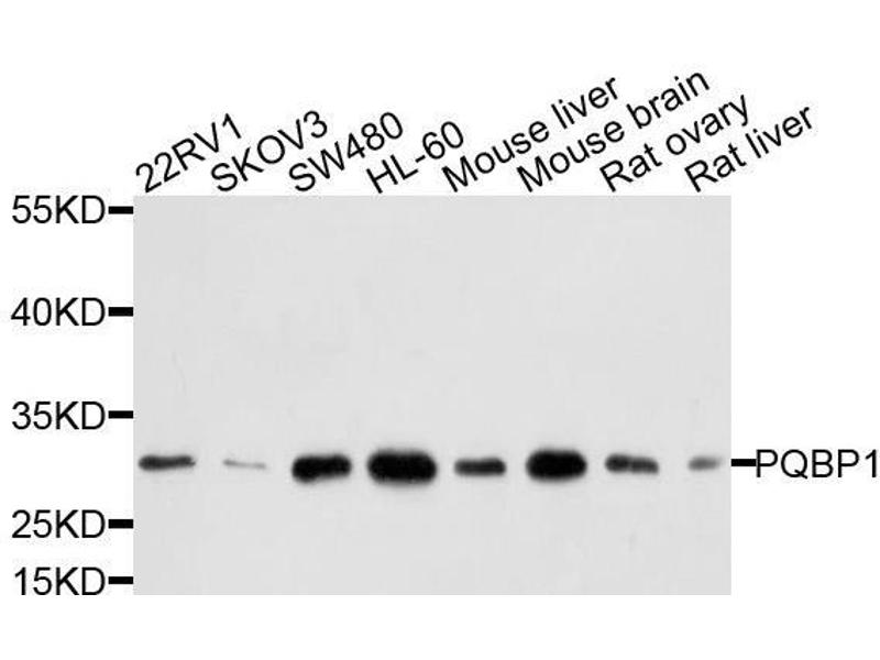 This gene encodes a nuclear polyglutamine-binding protein that is involved with transcription activation. The encoded protein contains a WW domain. Mutations in this gene have been found in patients with Renpenning syndrome 1 and other syndromes with X-linked mental retardation. Multiple alternatively spliced transcript variants that encode different protein isoforms have been described for this gene.,PQBP1,MRX2,MRX55,MRXS3,MRXS8,NPW38,RENS1,SHS,Epigenetics & Nuclear Signaling,Cancer,Signal Transduction,Endocrine & Metabolism,Lipid Metabolism,Neuroscience,Neurodegenerative Diseases,PQBP1