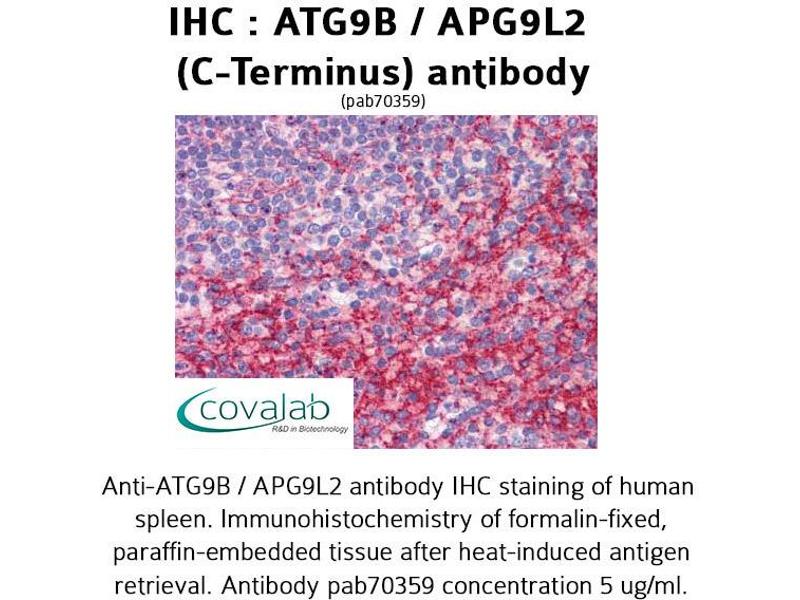 - Reacts with human ATG9B