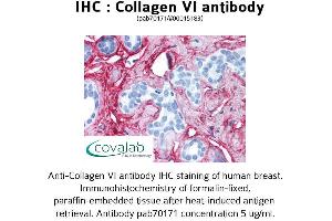 - Reacts with Collagen Type VI from human and bovine placenta