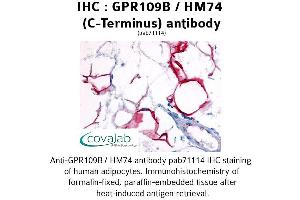 Reacts with human GPR109B / HM74. BLAST analysis of the peptide immunogen showed no homology with other human proteins.