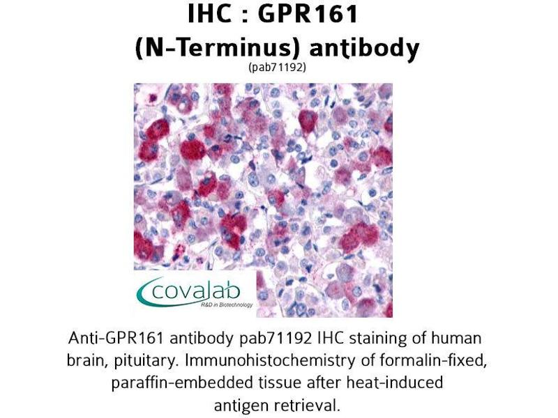 - Synthetic 18 amino acid peptide from N-terminal extracellular domain of human GPR161. Percent identity with other species by BLAST analysis: Human (100%), Gorilla (100%), Gibbon (100%), Monkey (100%), Marmoset (94%), Horse (89%), Hamster (83%)