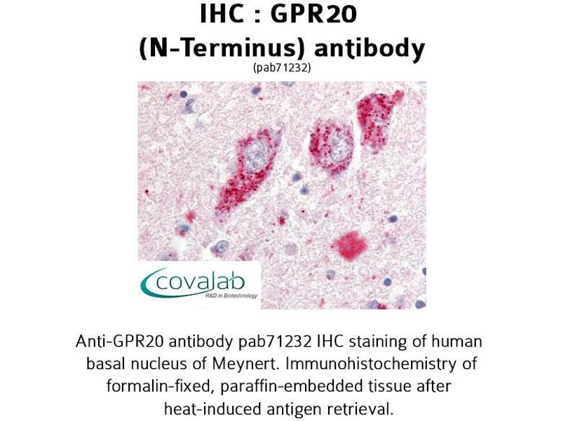 - Synthetic 20 amino acid peptide from N-terminal extracellular domain of human GPR20. Percent identity with other species by BLAST analysis: Human (100%), Gorilla (95%), Monkey (95%), Marmoset (80%).