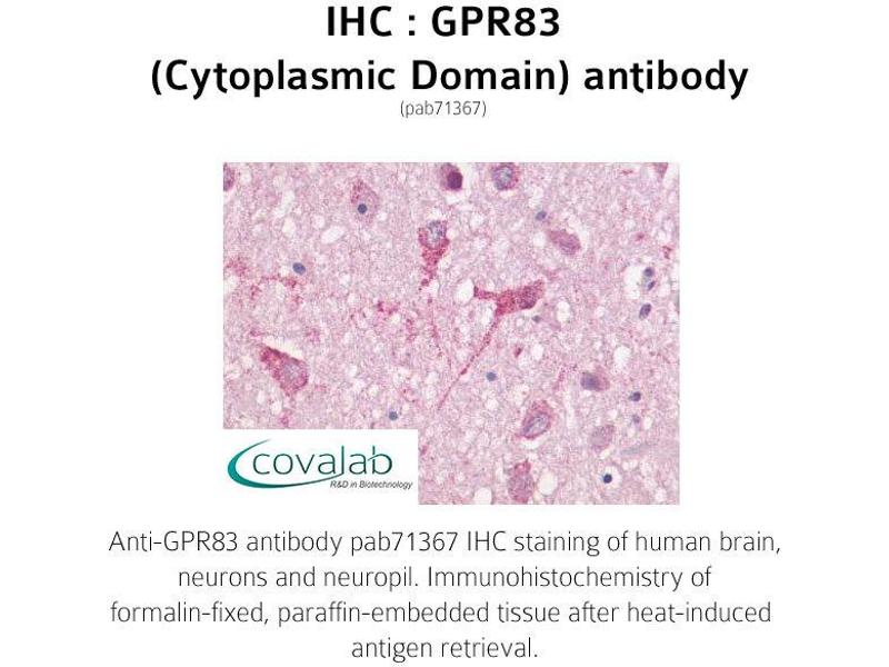 - Synthetic 18 amino acid peptide from 3rd cytoplasmic domain of human GPR83. Percent identity with other species by BLAST analysis: Human (100%), Gibbon (94%), Monkey (94%), Marmoset (89%), Mouse (89%), Rat (89%), Dog (89%), Hamster (89%)