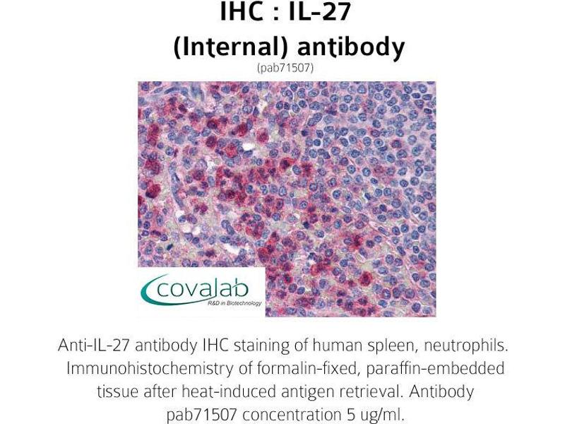 - Reacts with the internal part of human IL-27