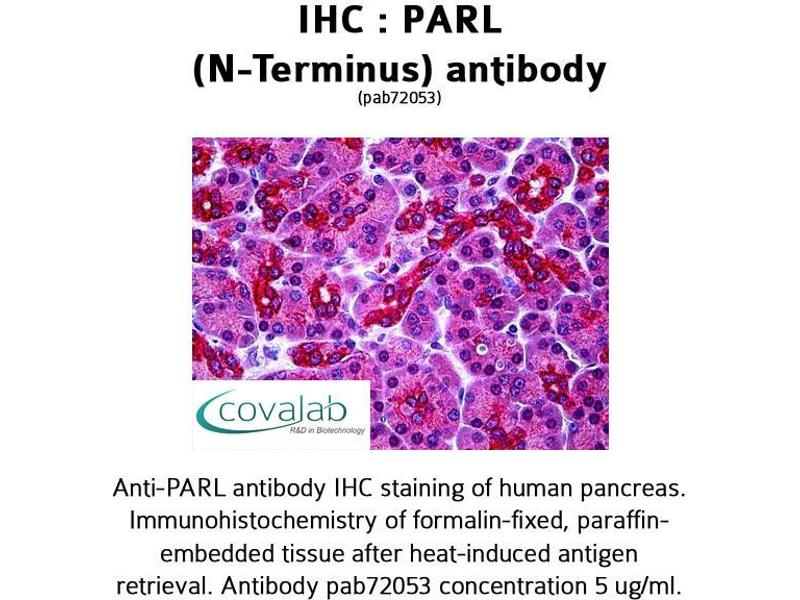 - PARL antibody was raised against a 15 amino acid peptide from near the amino terminus of human PARL.