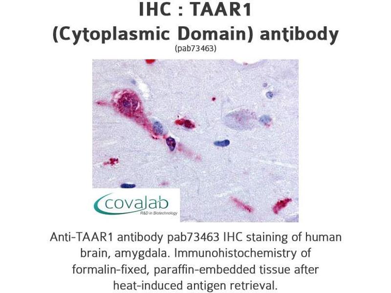 - Reacts with the cytoplasmic domain of human TAAR1
