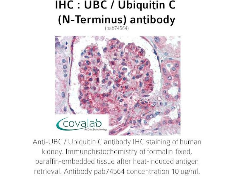 - Reacts with the N-terminus part of human UBC / Ubiquitin C
