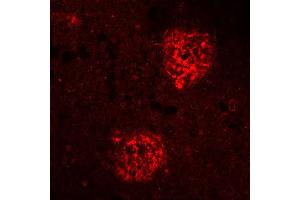 Cet anticorps anti-Abeta 1-40 Polyclonal Lapin (ABIN1742442) détecte spécifiquement Abeta 1-40 dans WB et IHC (p). L’anticorps est réactif avec des échantillons de Rat, Humain et Souris.