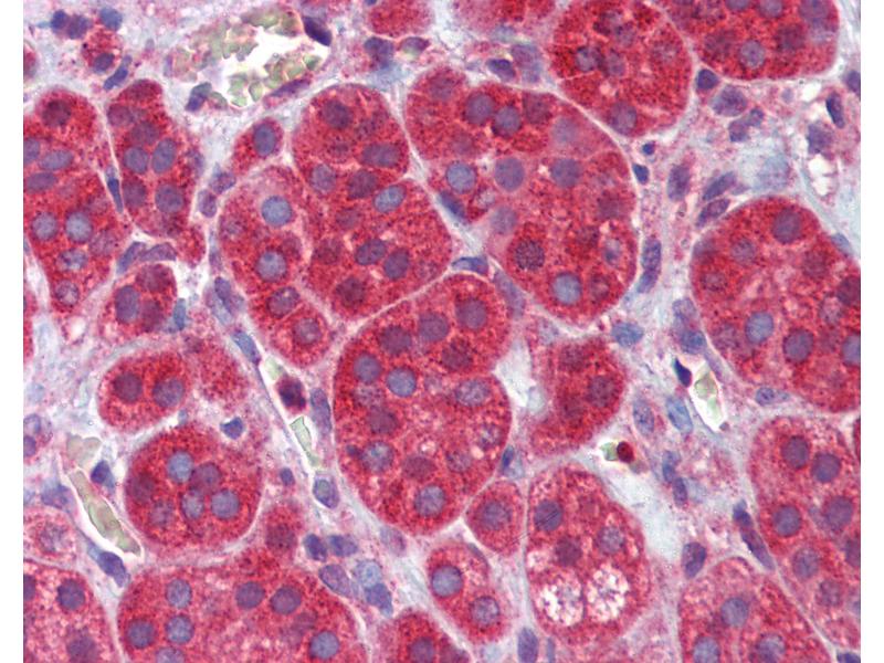 Usage: Immunohistochemistry: This antibody was validated for use in immunohistochemistry on a panel of 21 formalin-fixed, paraffin-embedded (FFPE) human tissues after heat induced antigen retrieval in pH 6.0 citrate buffer. After incubation with the primary antibody, slides were incubated with biotinylated secondary antibody, followed by alkaline phosphatase-streptavidin and chromogen. The stained slides were evaluated by a pathologist to confirm staining specificity. The optimal working concentration for this antibody was determined to be 10 μg/mL. -
