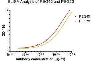 - The PEG Antibody [Biotin], mAb, Mouse detects PEG backbone. The product can detect the variety of PEGs such as PEG40K, PEG20K, PEG5K, PEG12, PEGylated drugs and PEG conjugates.