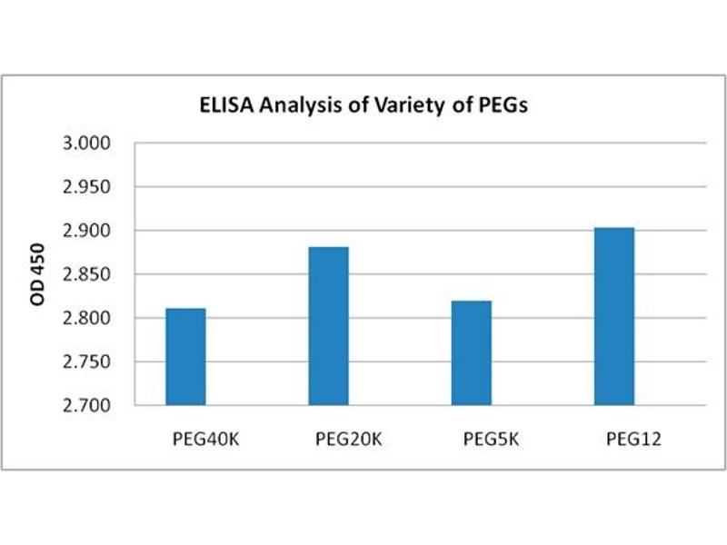- PEG (Polyethylene glycol) is a polyether compound with many applications from industrial manufacturing to medicine. PEGylation is a technology that covalently couples non-toxic, hydrophilic polyethylene glycol (PEG) to the drug. It is an FDA-approved method for the delivery of protein drugs. PEG modification can reduce the drug immunogenicity and antigenicity. PEGylated drug decelerates renal excretion, improves stability towards proteolysis and increases its half life in blood. Accurate and sensitive quantification of PEG conjugates is important for PEG conjugated product development and pharmaceutical study. Biotin conjugated PEG Antibody is a useful tool for the detection of PEGylated molecules. The PEG Antibody [Biotin], mAb, Mouse is PEG antibody conjugated with biotin.