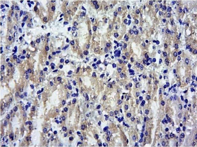 Immunohistochemistry: Paraffin embedded Human Kidney. Recommended concentration: 8 μg/mL. Paraffin embedded Mouse Kidney. Recommended concentration: 5-10 μg/mL.