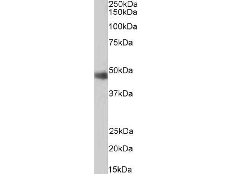 Western Blot: Approx 48 kDa band observed in nuclear lysates of cell line Jurkat (calculated MW of 50.4 kDa according to Human NP_002543.2 Recommended concentration: 0.3-1 μg/mL. Primary incubation was 1 hour. Preliminary testing was unsuccessful on cell l