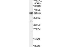 Western Blot: Approx 75 kDa observed in nuclear lysates of cell lines HeLa, HepG2 and K562. This molecular weight is routinely observed by other sources. Recommended concentration: 0.3-1 μg/mL. Primary incubation 1 hour at room temperature.