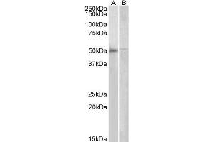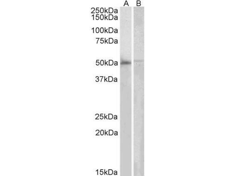 Western Blot: Approx 50 kDa band observed in Human Bone marrow and Human Peripheral Blood Mononucleocytes lysates (calculated MW of 50.3 kDa according to NP_079148.2). Recommended concentration: 2-6 μg/mL.