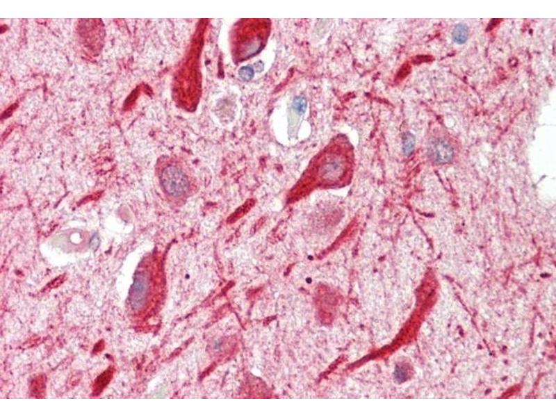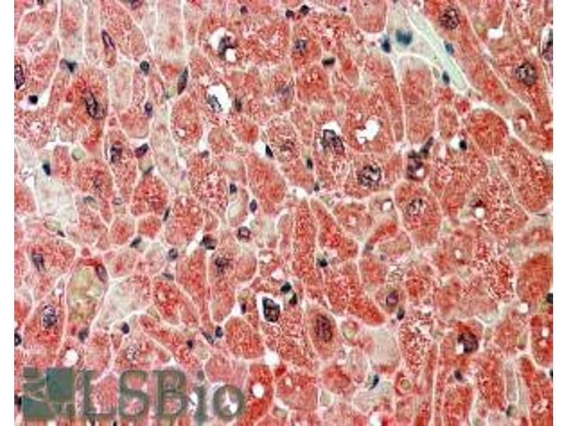 Immunohistochemistry: Paraffin embedded Human Heart and Brain (Cortex). Recommended concentration: 5 μg/mL.