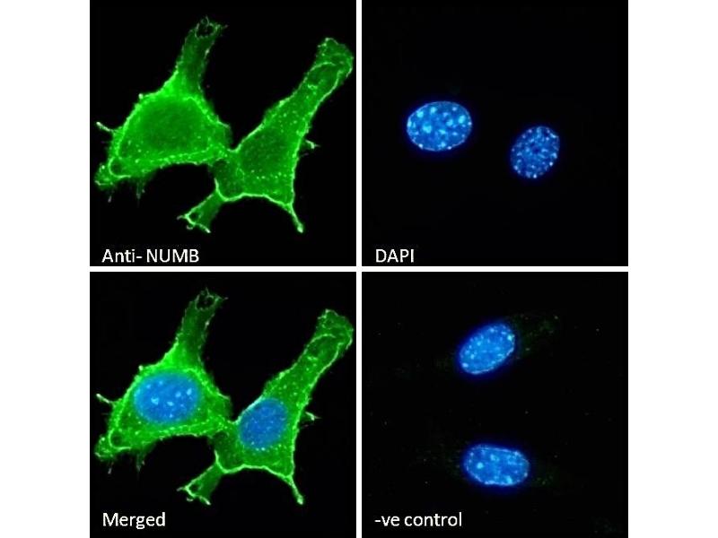 This antibody is expected to recognize all reported isoforms (NP_001005743.1, 001005744.1, NP_003735, NP_001005745.1). It is also likely to cross-react with Numblike (NUMBL, GeneID: 9253) which has a very similar C-Terminus, although this has not yet b