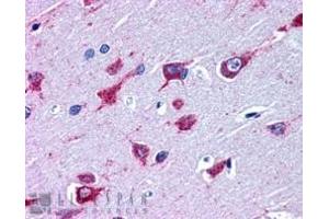 Immunohistochemistry: In paraffin embedded Human Cortex shows pixulate cytoplasm staining in some neuronal cells. Recommended concentration, 3-5 μg/mL.