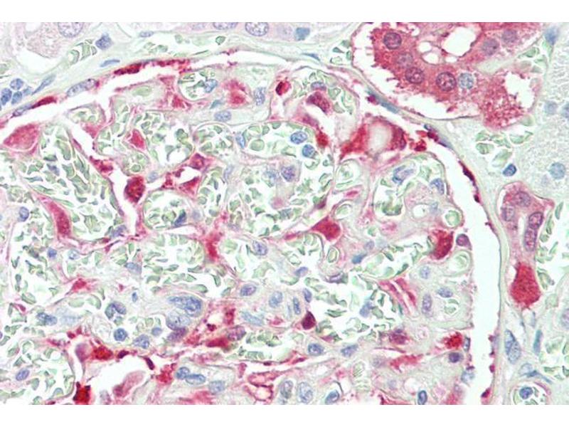 Immunohistochemistry: In paraffin embedded Human Kidney shows specific staining of the glomeruli. Recommended concentration: 2-4 μg/mL.