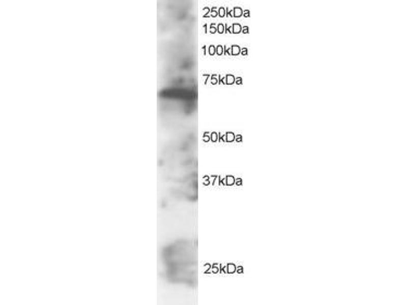 Western Blot: Approx 70 kDa band observed in Human Lymph Node and Human Peripheral Blood Mononucleocytes lysates (calculated MW of 69.0 kDa according to NP_055870.2). Recommended concentration: 0.1-0.3 μg/mL. Primary incubation was 1 hour.