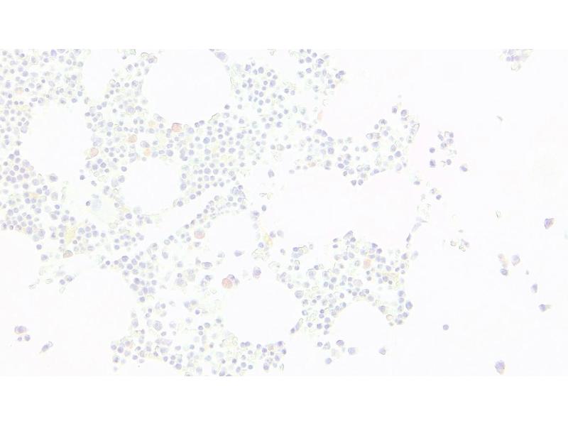 Immunohistochemistry: Paraffin embedded Human Bone Marrow. Staining in hematopoietic and stroma cells. Recommended concentration: 4-6 μg/mL.