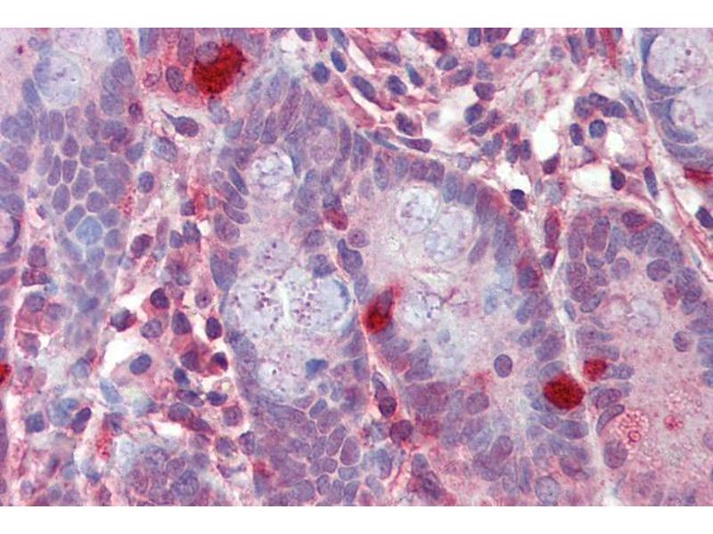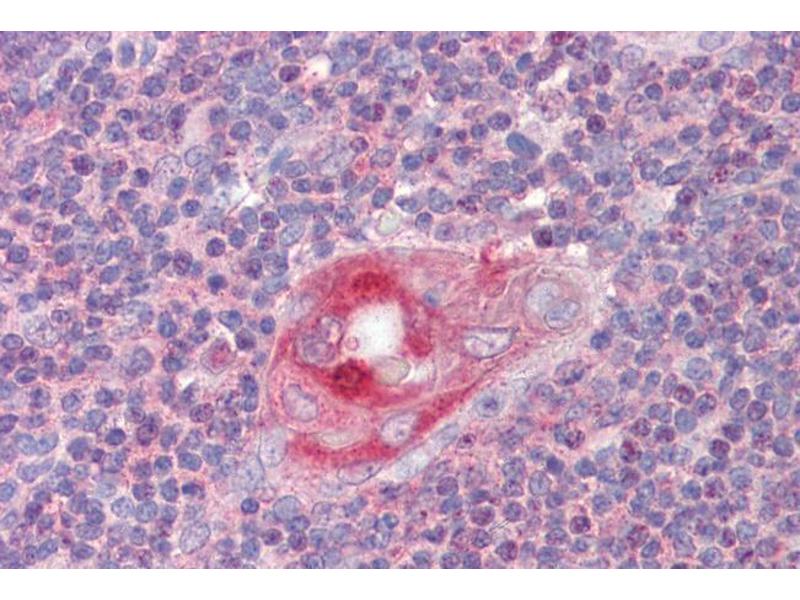 Immunohistochemistry: Paraffin embedded Human Thymus and Small Intestine. Recommended concentration: 2.5 μg/mL.
