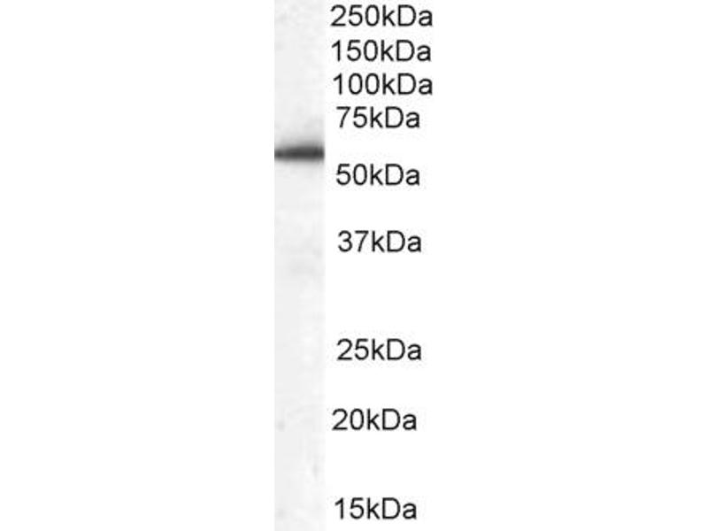 Western Blot: Approx 55 kDa band observed in lysates of Human Peripheral Blood Mononucleocytes (calculated MW of 48.3 kDa according to NP_054782.2). Recommended concentration: 0.03-0.1 μg/mL. Primary incubation was 1 hour.