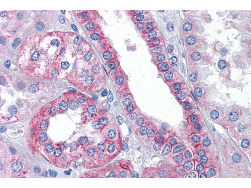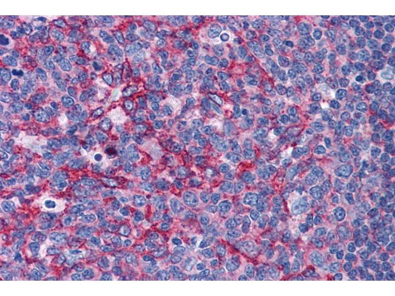 Immunohistochemistry: Paraffin embedded Human Tonsil and Kidney. Recommended concentration: 3.75 μg/mL.