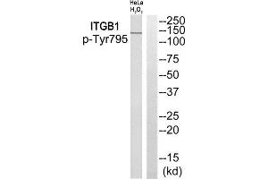 - Rabbit polyclonal antibody against ITGB1 protein. Specificity is as follows for the reactive species: H:Y795, M:Y795, R:Y796